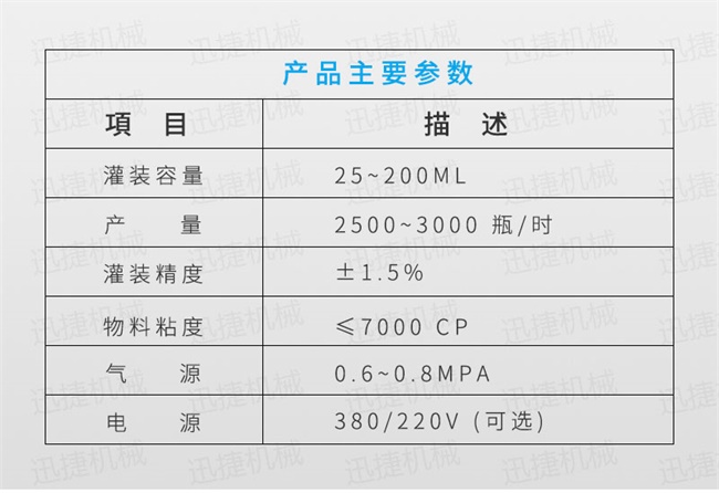 1、灌裝量:25~200ml/